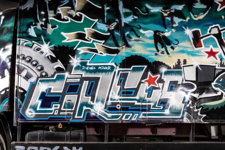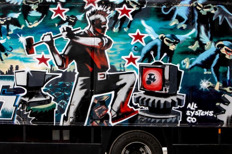 Ο λόγος που συμβαίνει αυτό είναι πως το Volvo FL6 του 1988 καλύπτεται σχεδόν εξ' ολοκλήρου από ένα γκράφιτι του Banksy. Τόσο το εξωτερικό του μέρος όσο και η καμπίνα του φέρουν την υπογραφή του περιβόητου street artist.